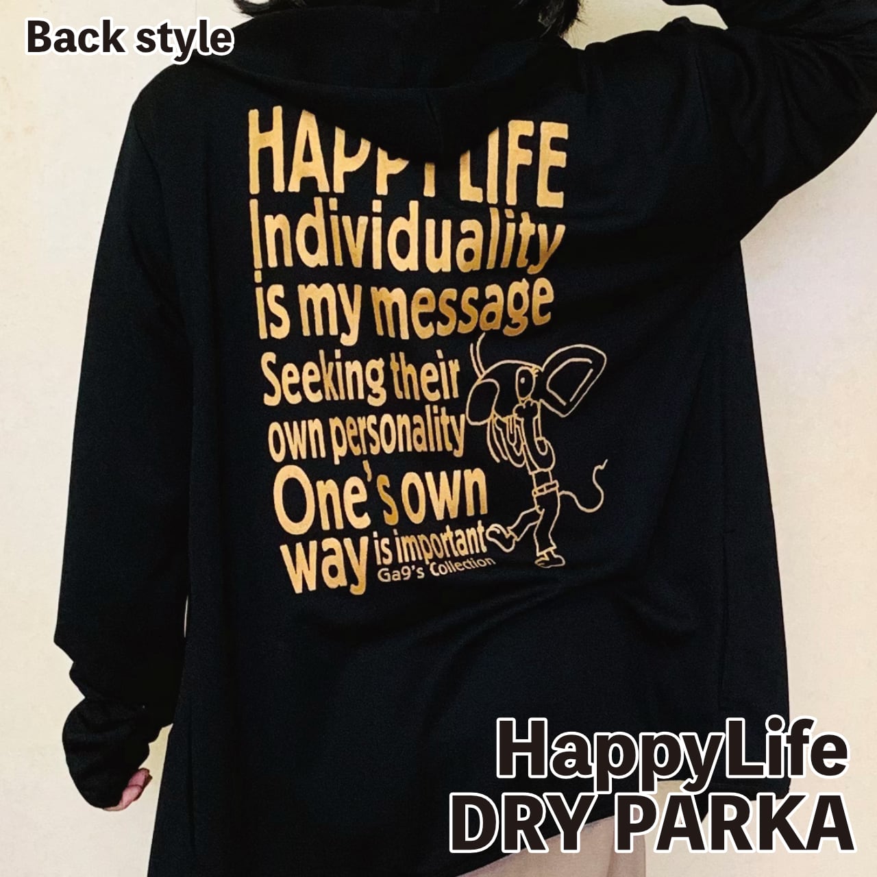 ゴールドのプリントが後ろ姿をオシャレに見せます