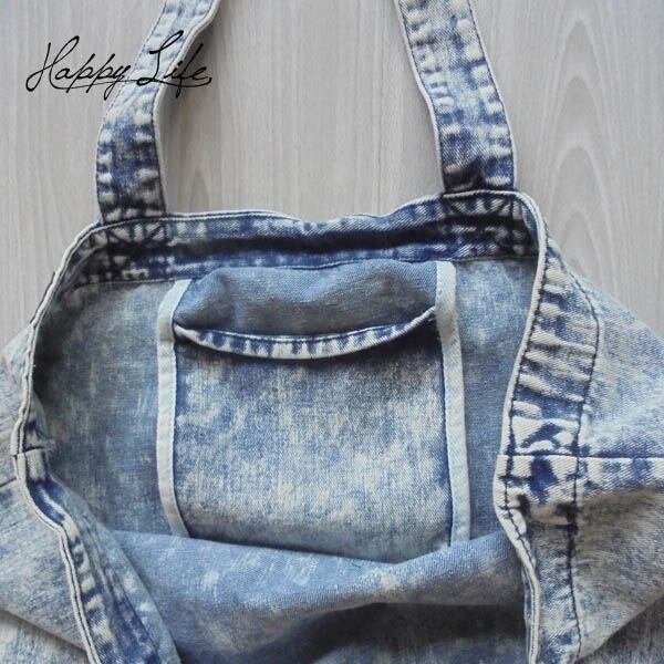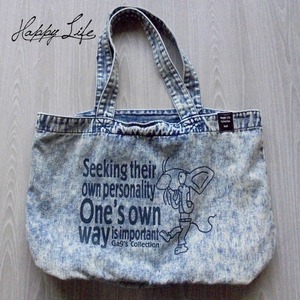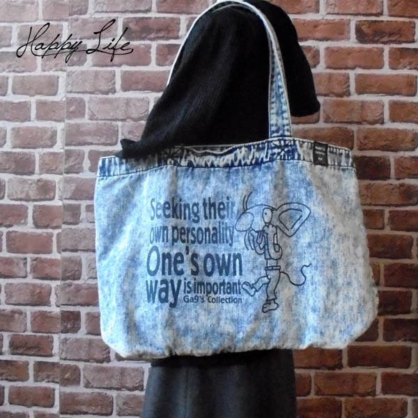 表面にはあっかんべーねずみプリントのデニム素材のお出かけトート。